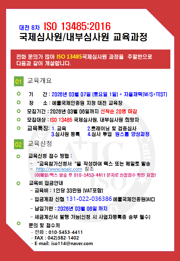 ¸¶°¨_´ëÀü 8Â÷ ÁÖ¸»¹Ý ISO 13485 ±¹Á¦¼±ÀÓ½É»ç¿ø °úÁ¤(03/07)